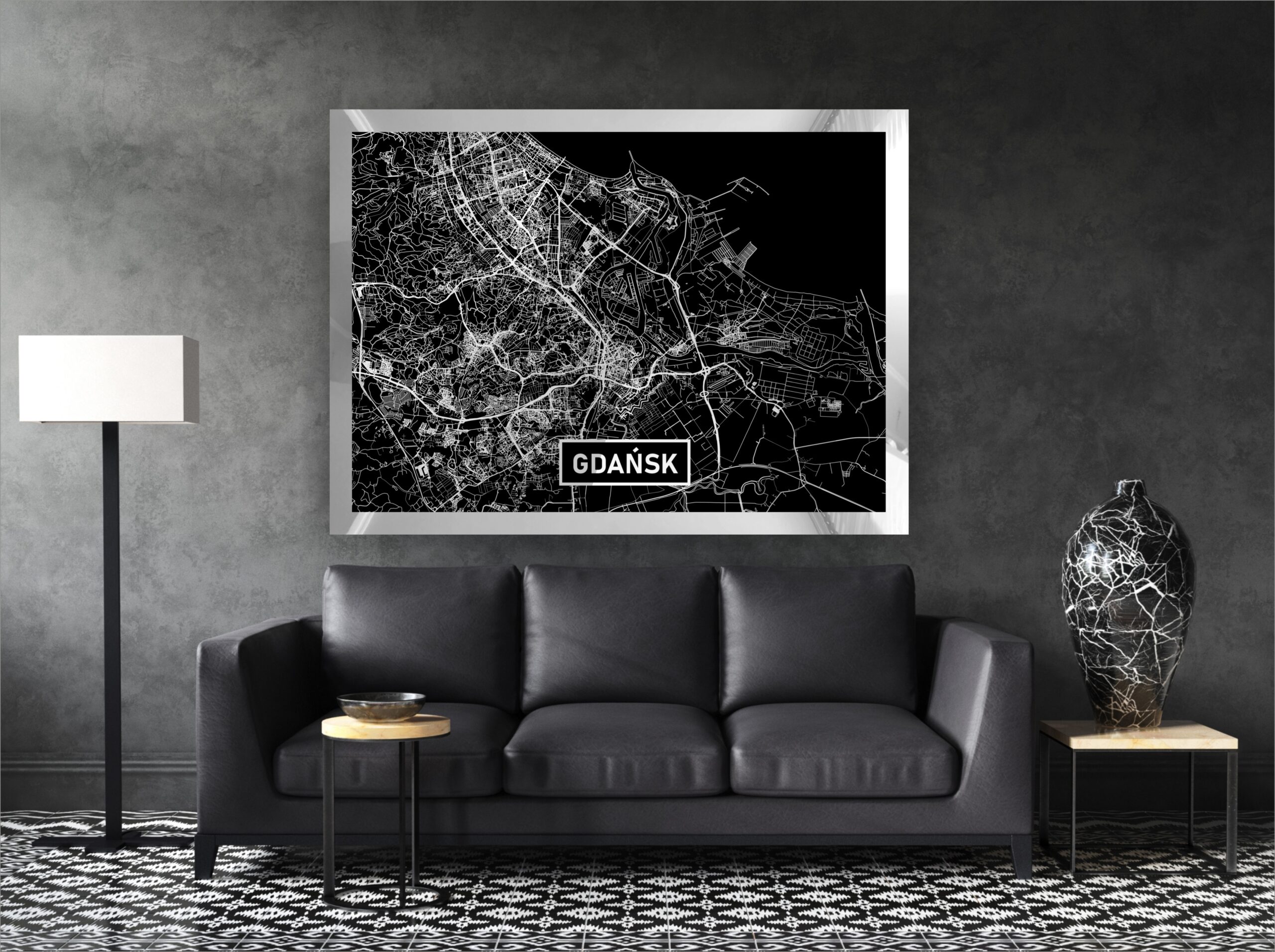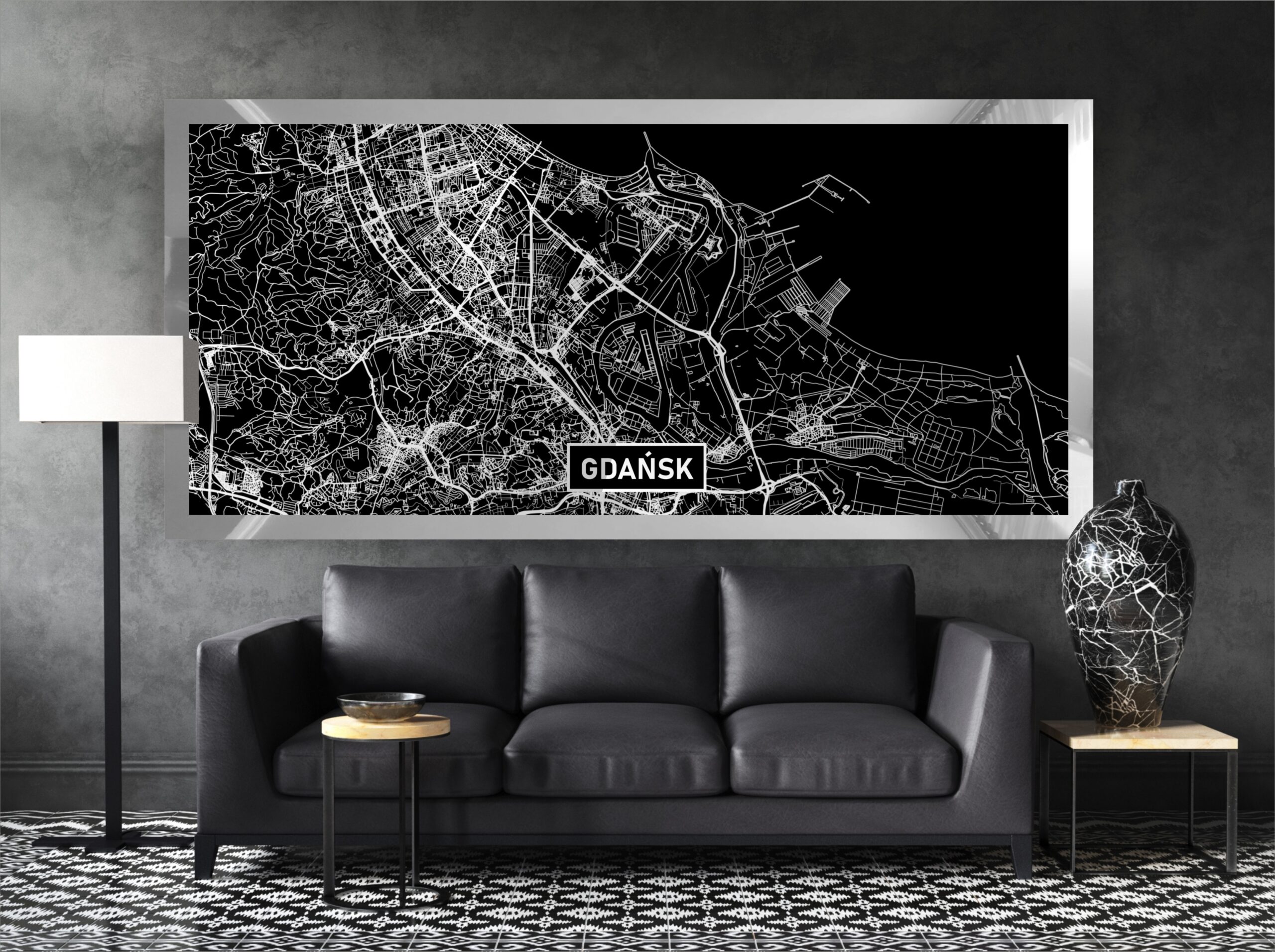 Mapy tworzymy z dbałością o najdrobniejszy element miasta, co w połączeniu z efektownym, srebrnym błyskiem zadowoli najbardziej wybredne gusta. Srebrny kolor na czarnym tle mieni się pod każdym kątem. Najdrobniejszy element, linia, obiekt na mapie dzięki specjalnej technice nadruku efektownie się błyszczy.