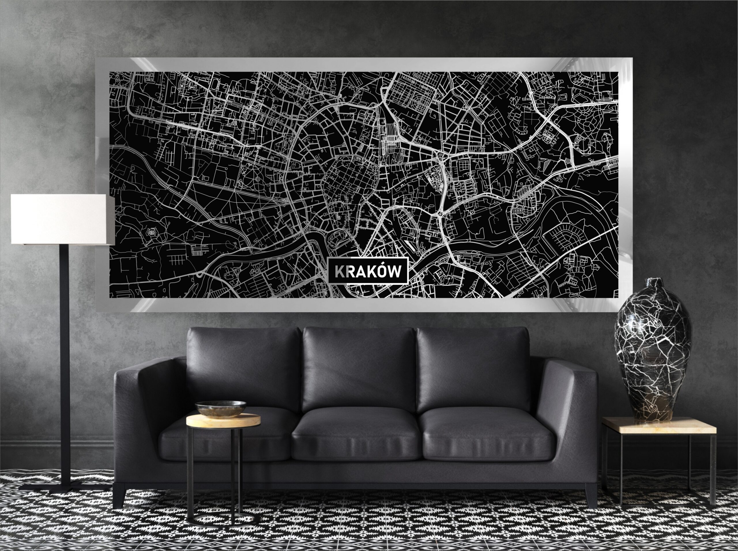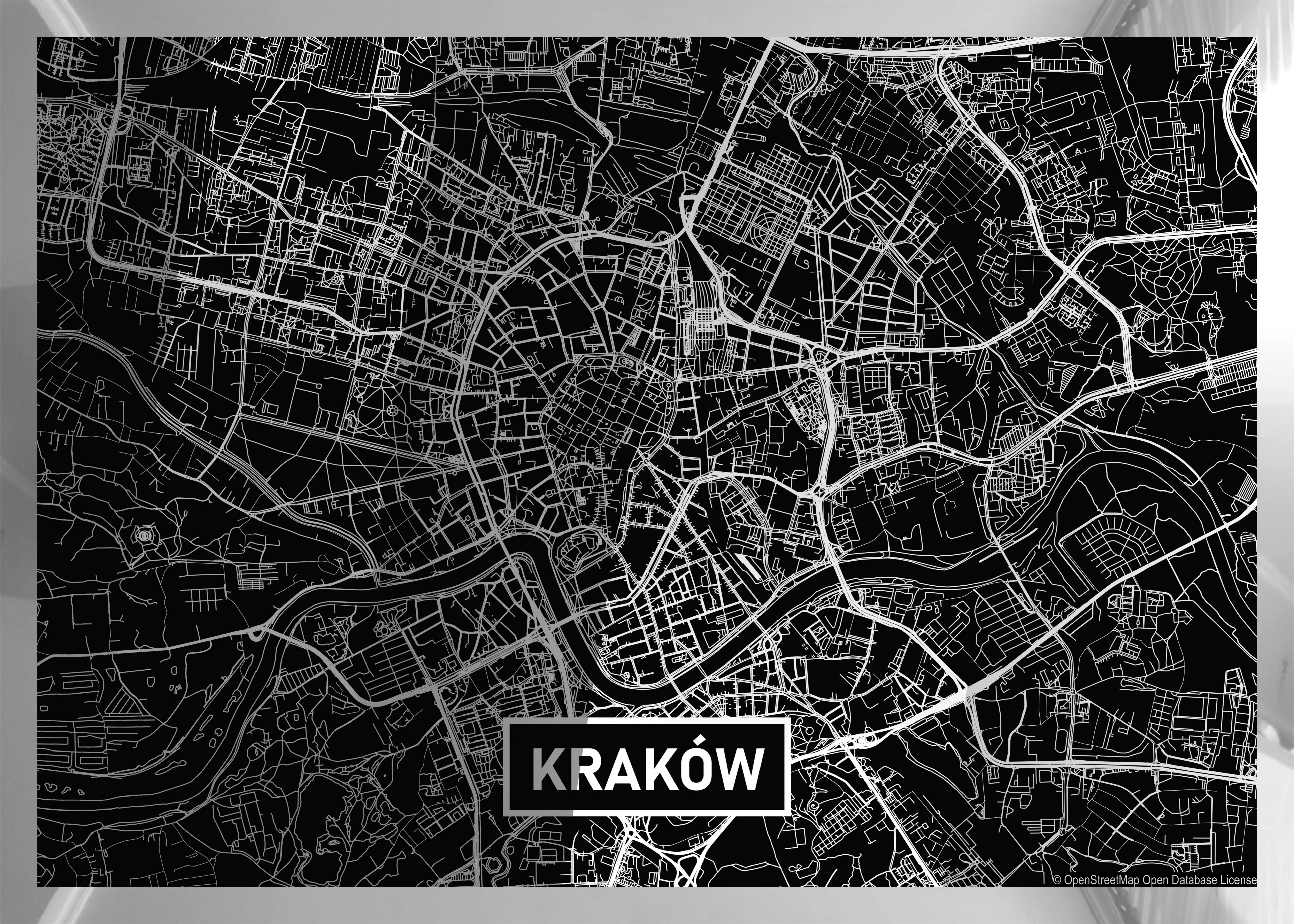 Mapy tworzymy z dbałością o najdrobniejszy element miasta, co w połączeniu z efektownym, srebrnym błyskiem zadowoli najbardziej wybredne gusta. Srebrny kolor na czarnym tle mieni się pod każdym kątem. Najdrobniejszy element, linia, obiekt na mapie dzięki specjalnej technice nadruku efektownie się błyszczy.