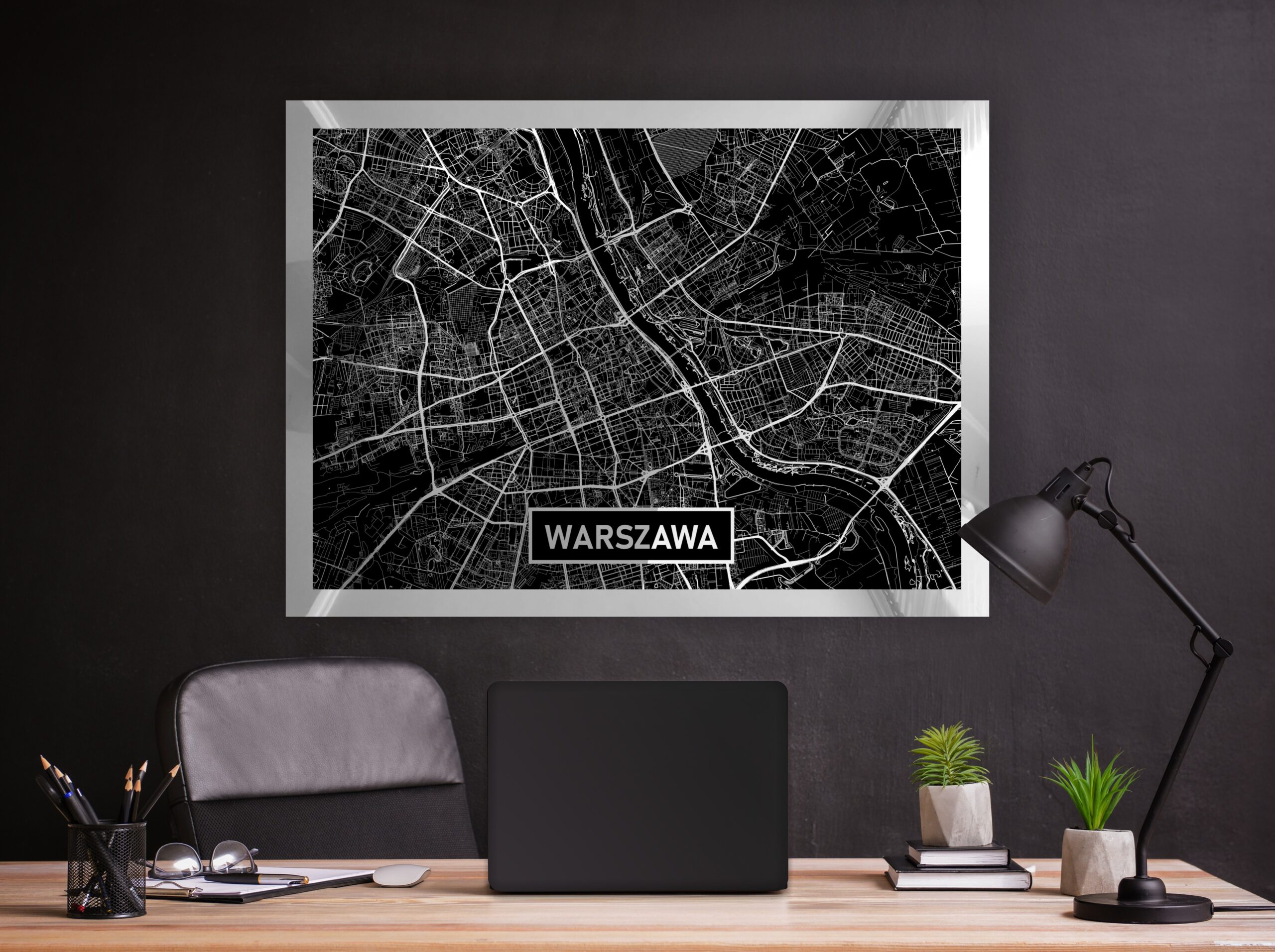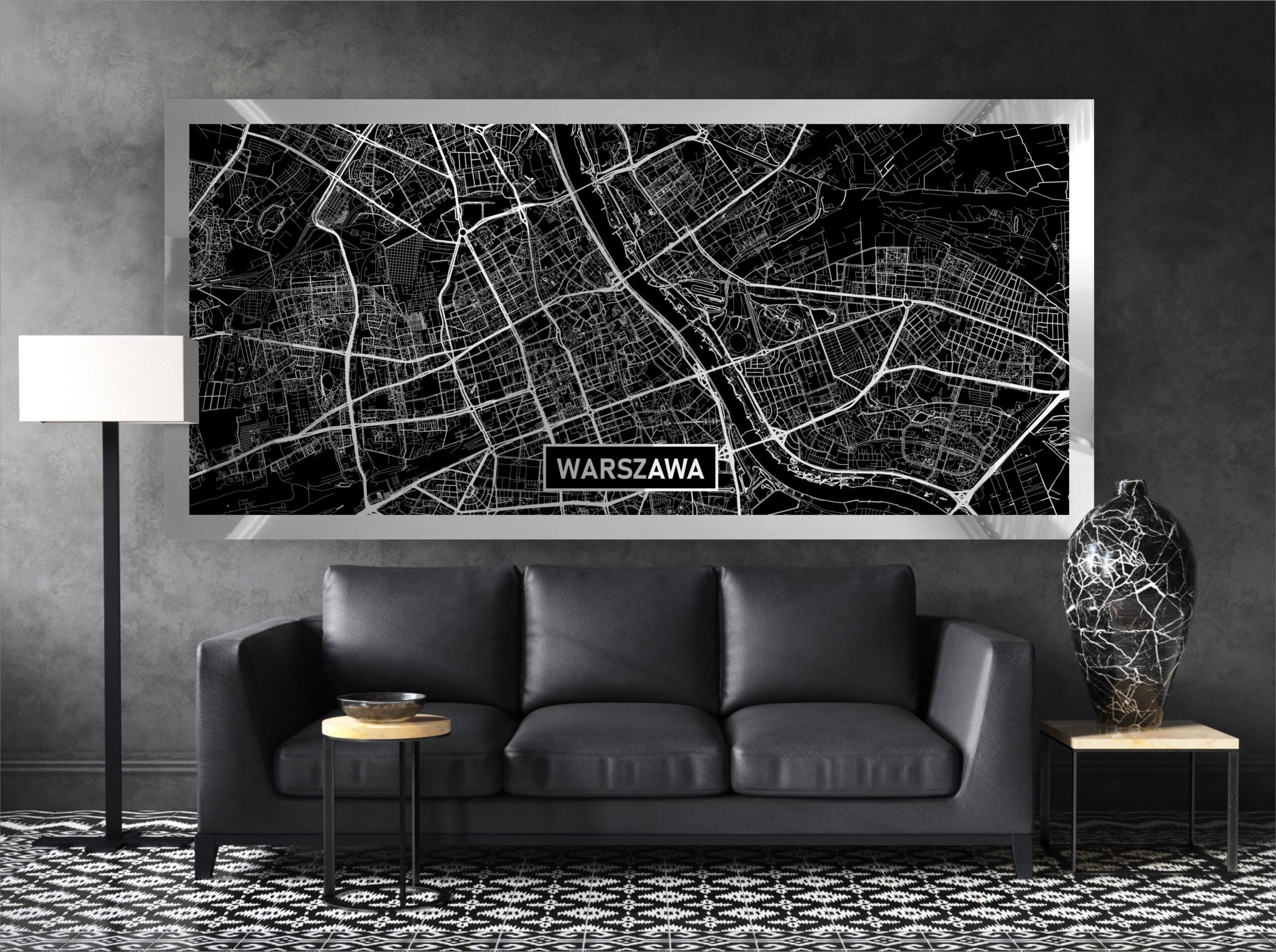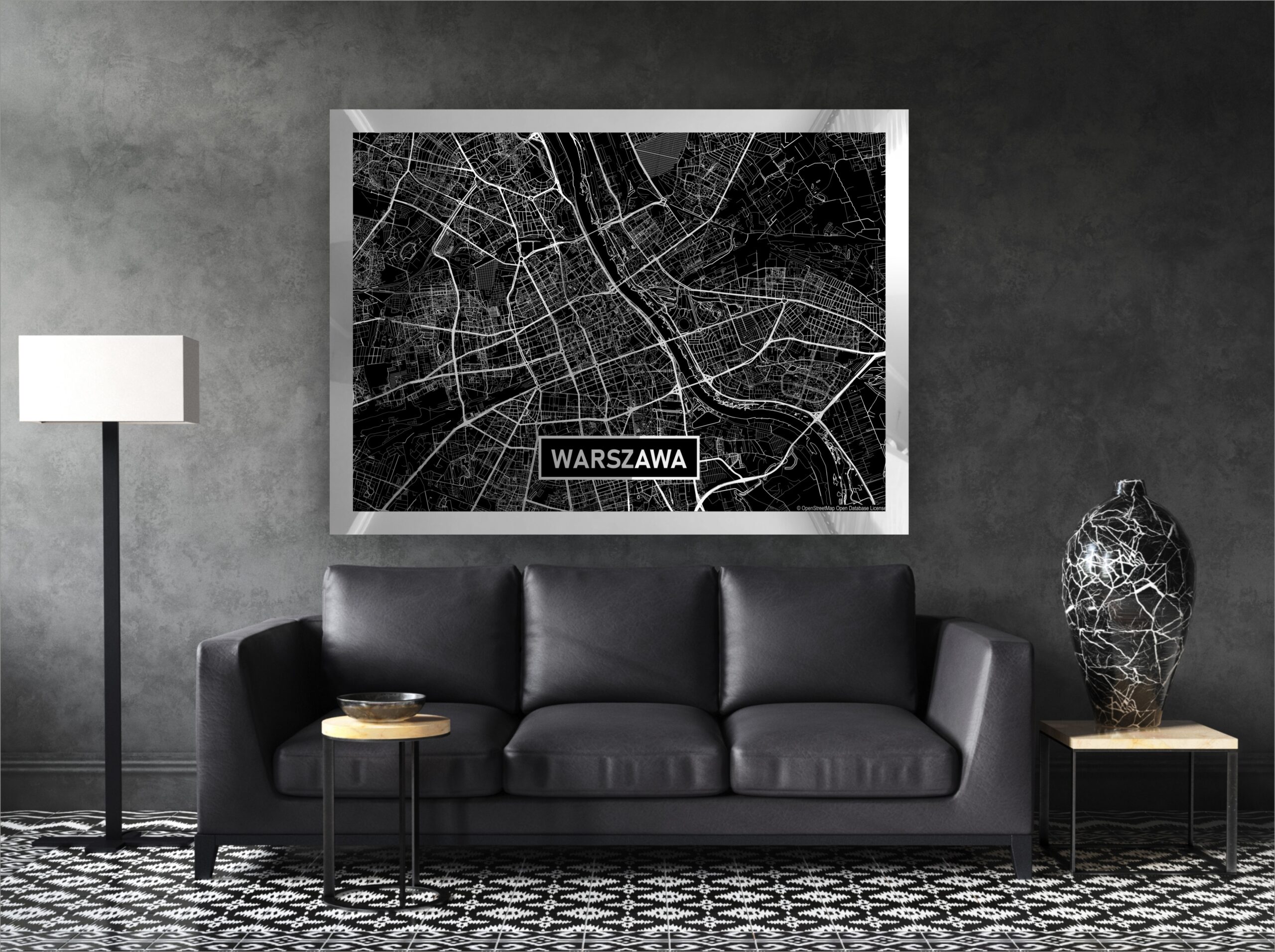 Mapy tworzymy z dbałością o najdrobniejszy element miasta, co w połączeniu z efektownym, srebrnym błyskiem zadowoli najbardziej wybredne gusta. Srebrny kolor na czarnym tle mieni się pod każdym kątem. Najdrobniejszy element, linia, obiekt na mapie dzięki specjalnej technice nadruku efektownie się błyszczy.