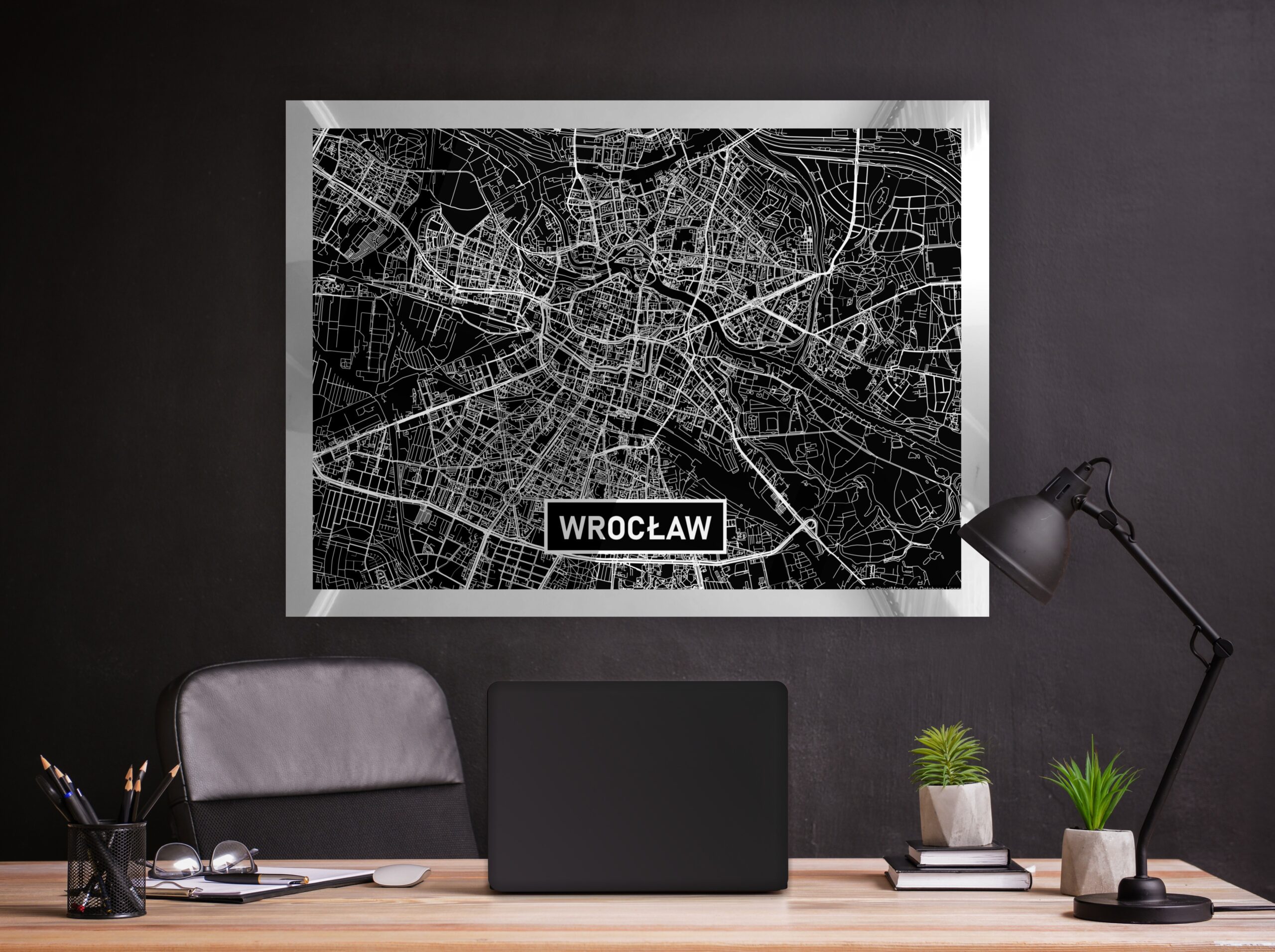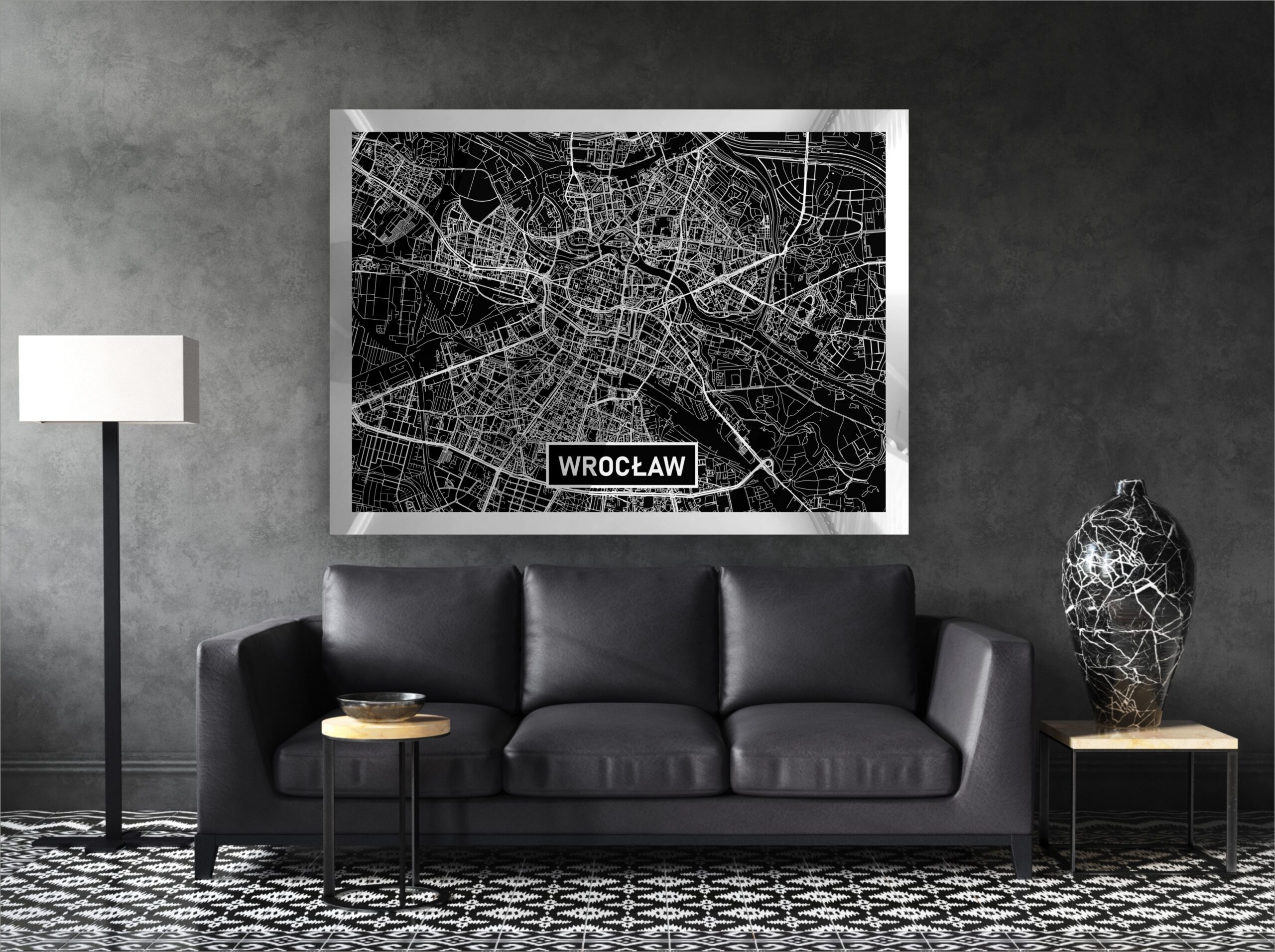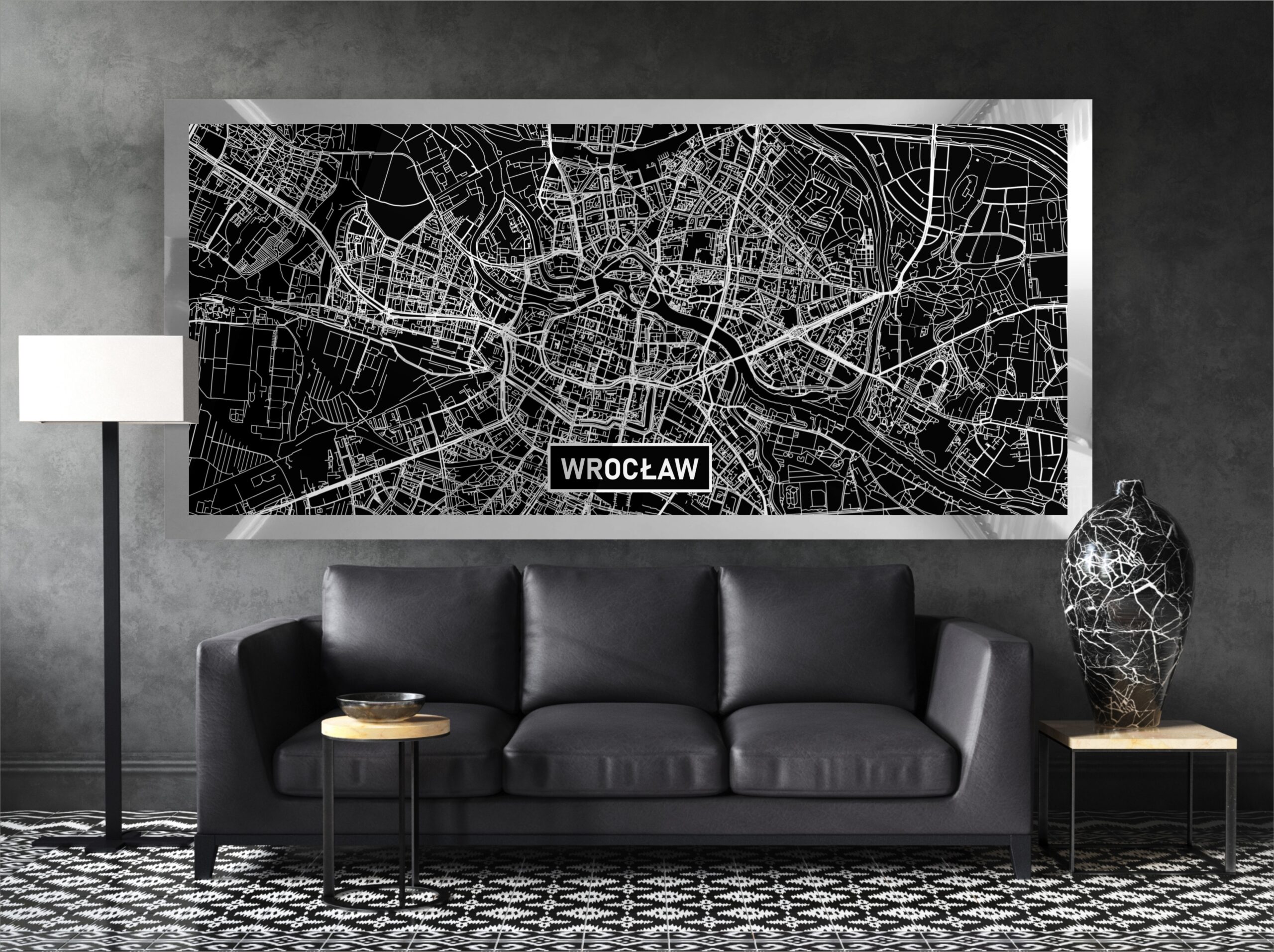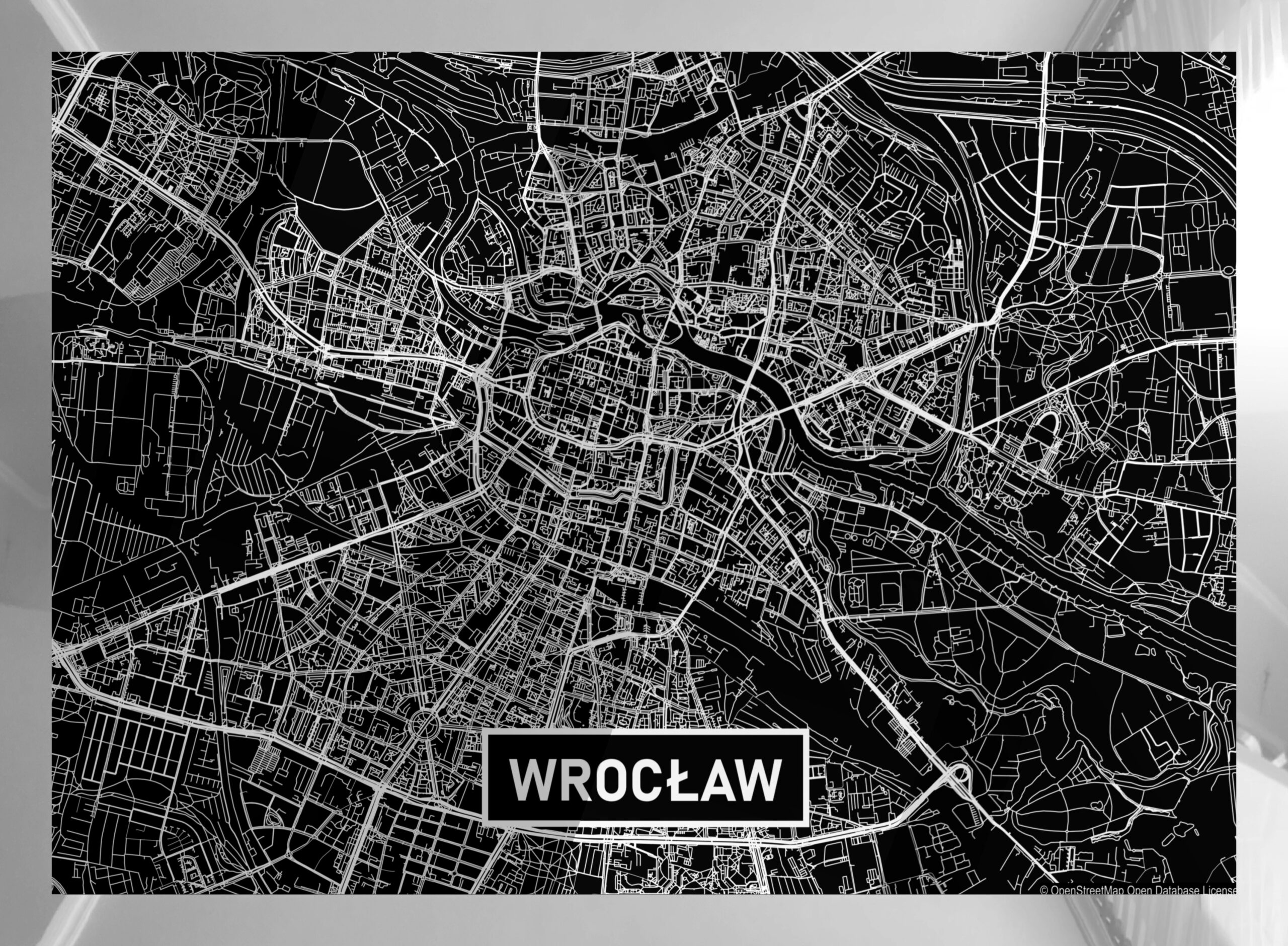 Mapy tworzymy z dbałością o najdrobniejszy element miasta, co w połączeniu z efektownym, srebrnym błyskiem zadowoli najbardziej wybredne gusta. Srebrny kolor na czarnym tle mieni się pod każdym kątem. Najdrobniejszy element, linia, obiekt na mapie dzięki specjalnej technice nadruku efektownie się błyszczy.