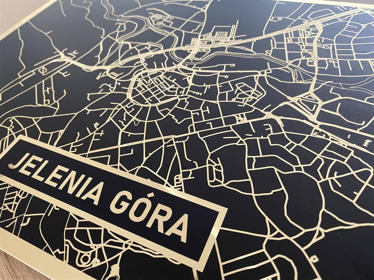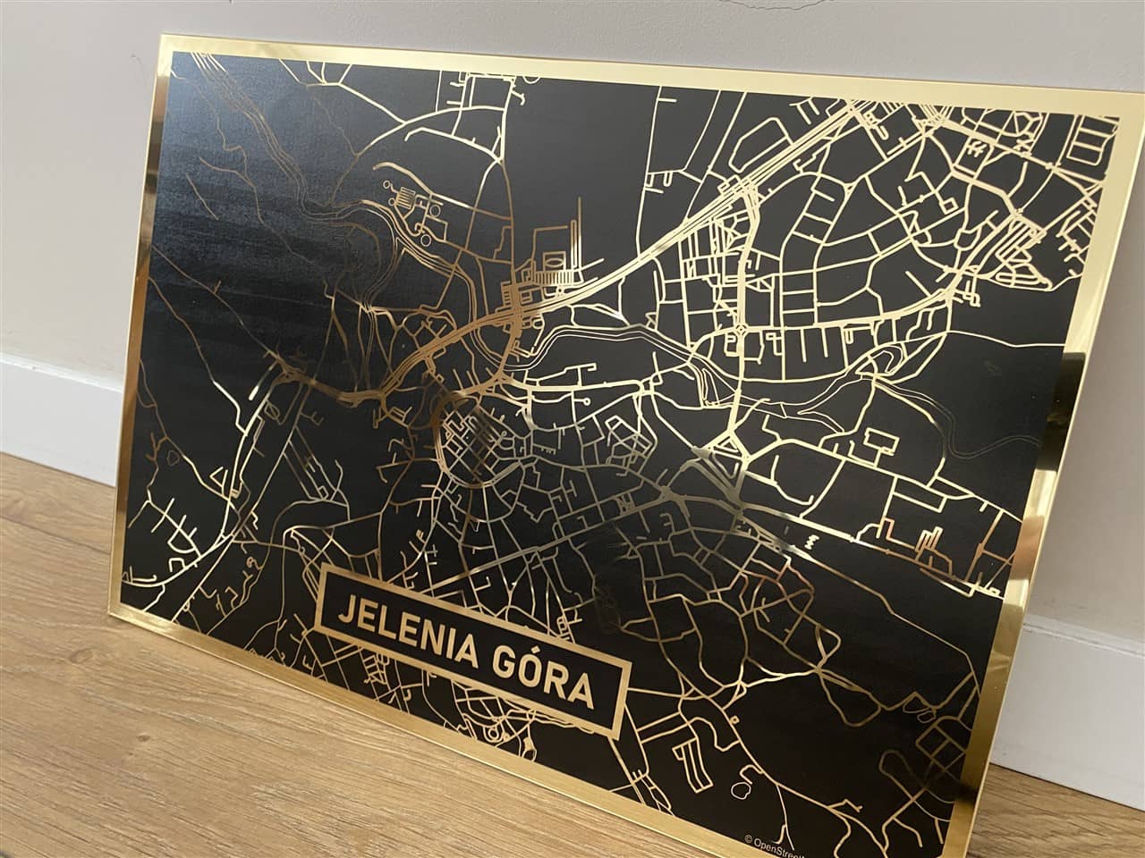 • Złota mapa Jeleniej Góry z pięknym złotym połyskiem nada wyjątkowości i elegancji każdemu wnętrzu.